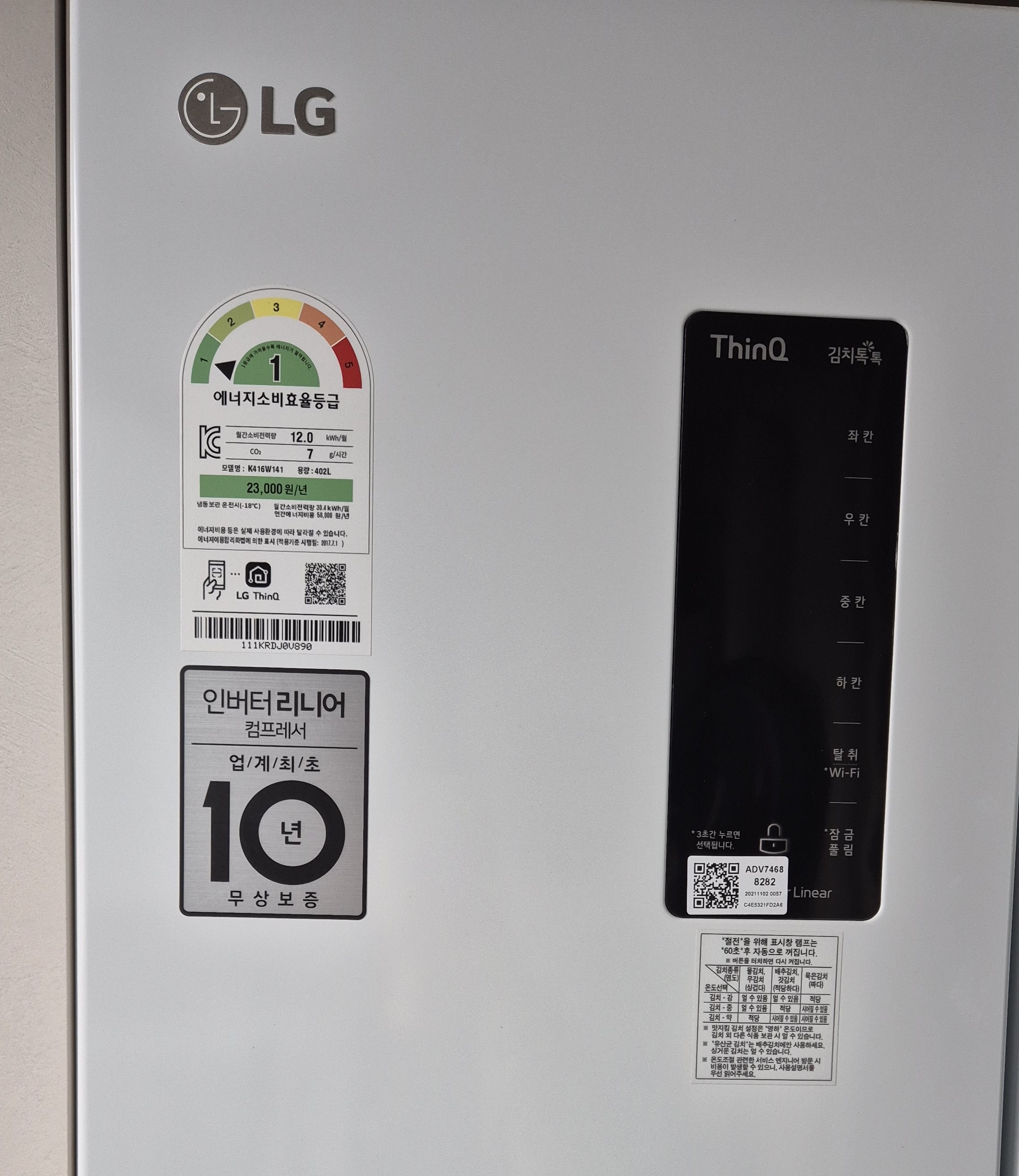 - 에너지소비효율 라벨 + 제조번호 명판 촬영