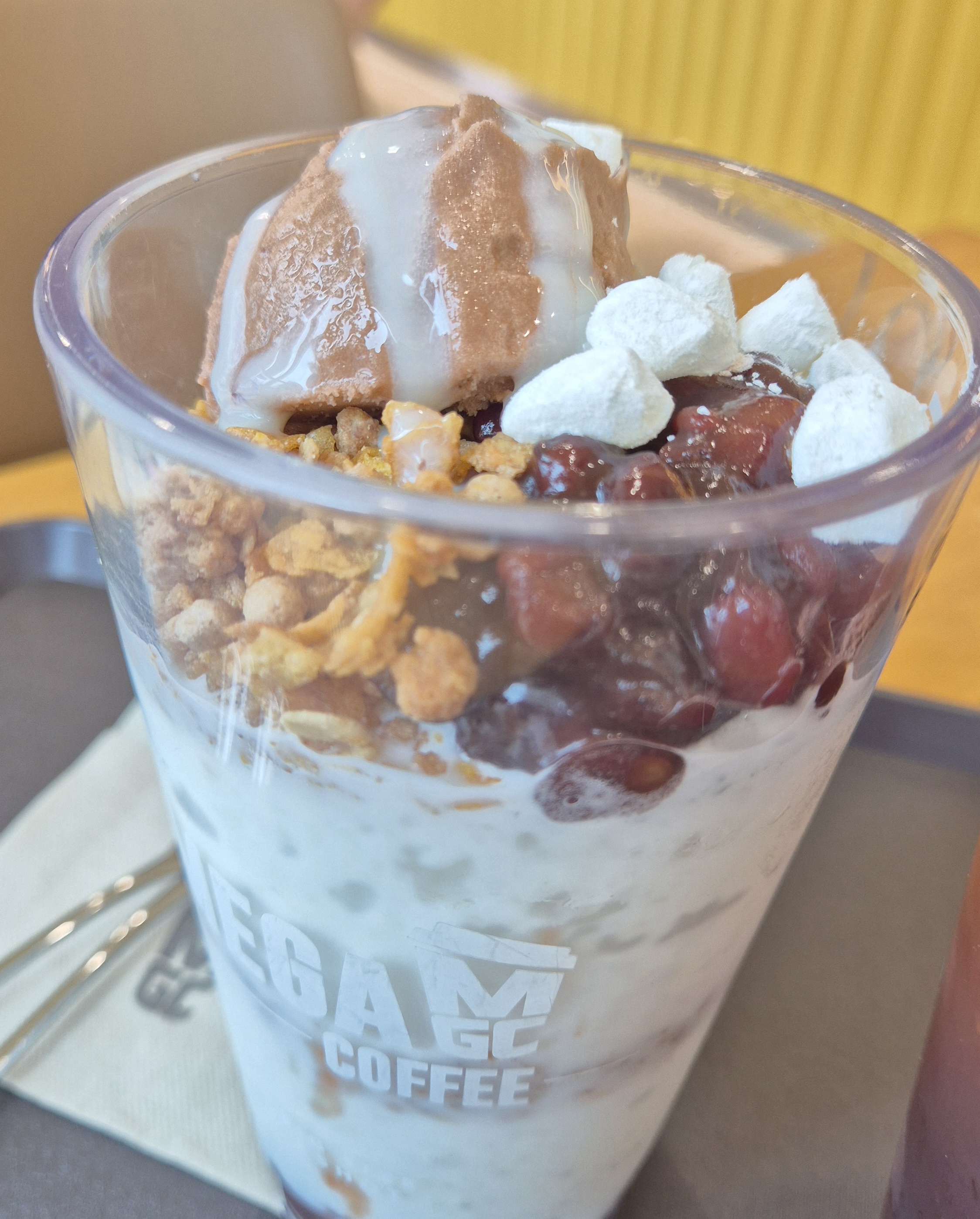 - 가격: 4,400원, 우유빙수 + 팥 젤라또 + 떡 + 그래놀라 시리얼 구성